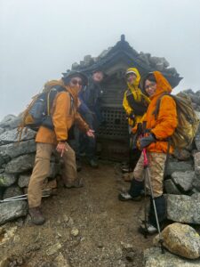 危険個所をクリアし、別山南峰に着いた。口々に「やばかったね!」(いやマジでマジで)「死ぬかと思った」(よかったね)など喜びを分かち合いながら、別山のお社さんに今日の下山の無事をお祈りした。