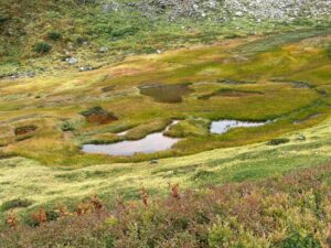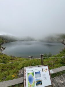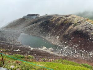 その後、地獄谷の草木も生えない、強い硫黄の匂いをまかれながら、雷鳥荘や血の池、みくりが池をめぐり、出発地点の室堂にたどり着いた。2日間の合計は、11,6㎞、11時間30分の山行になった。最後に立山ポークカレーと立山玉殿の湧水をたっぷりと飲んで、我々はこの山旅を打ち上げた。